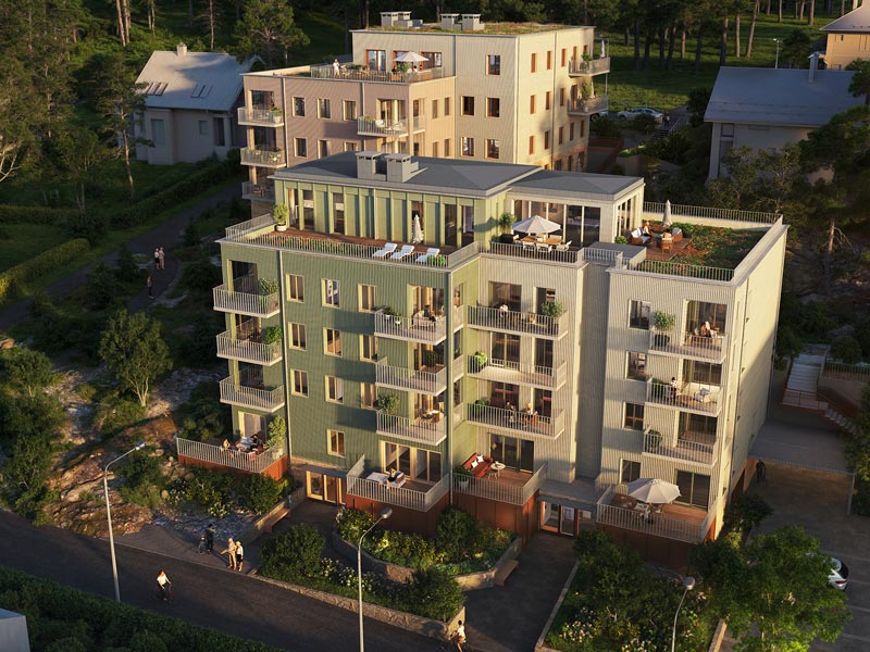 With Bockemossen Park and its pond as the closest neighbour, you will find Lindblomsallén. Inhouse Tech is preparing the construction documents for three point‑block residential buildings with a villa‑like character in Sävedalen. The project comprises 44 newly built tenant‑owned homes, with sizes of up to 147 m².