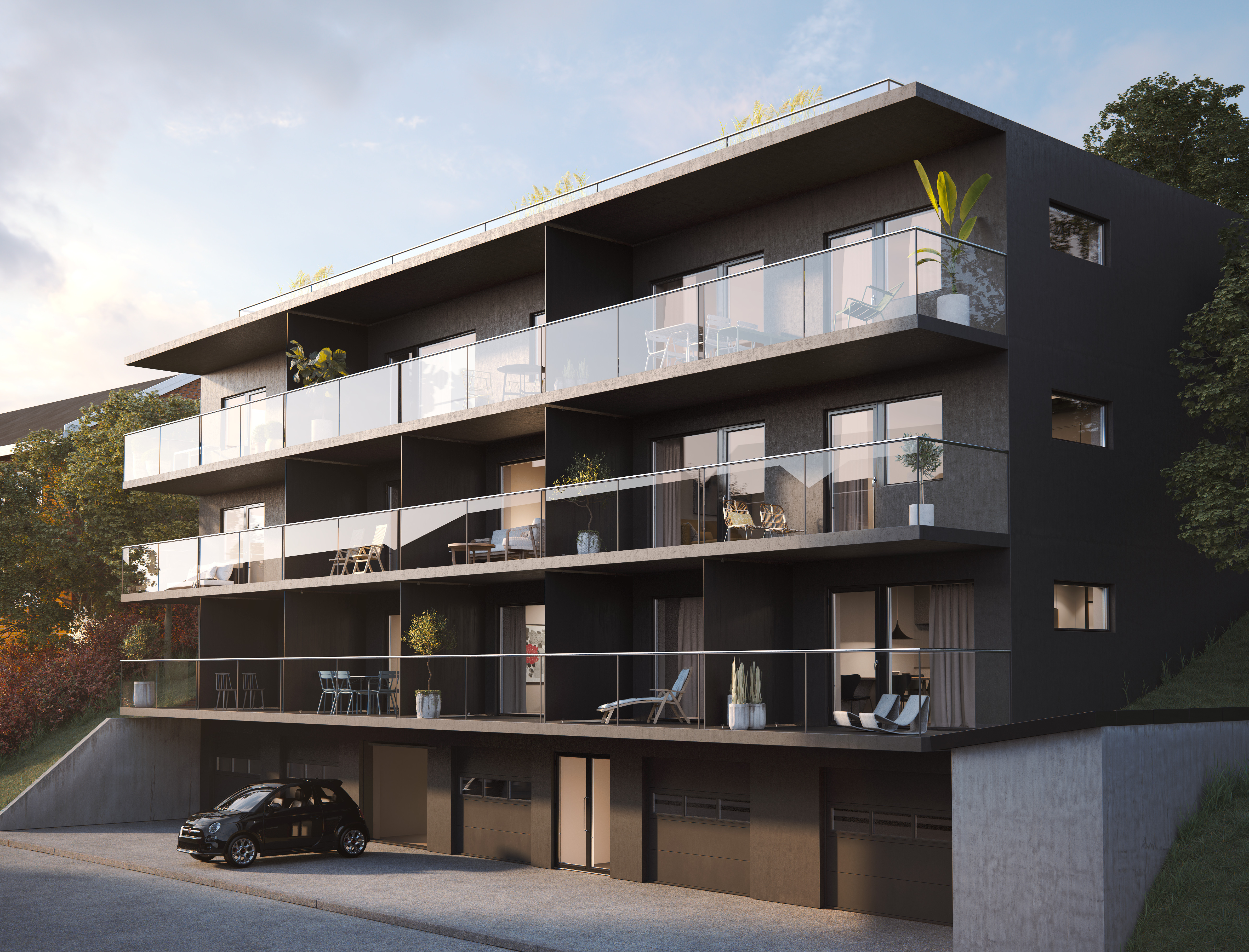 På Landshövdingegatan i centrala Krokslätt byggs ett flerbostadshus med 13 lägenheter samt garage i bottenplan. På taket ryms en gemensam samlingslokal samt terrass med plats för spabad och avkoppling.